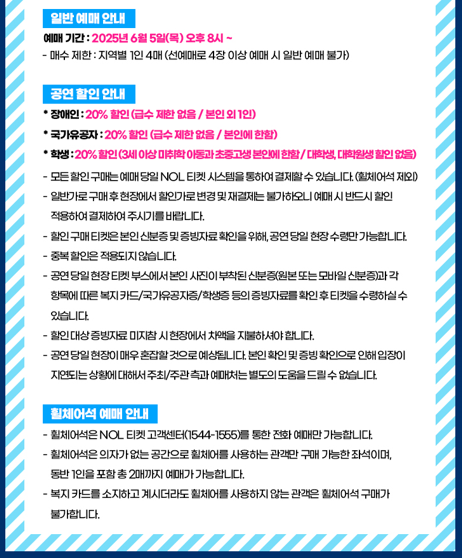 - 예매창은 예매 시작 5분 전에 미리 들어가 대기