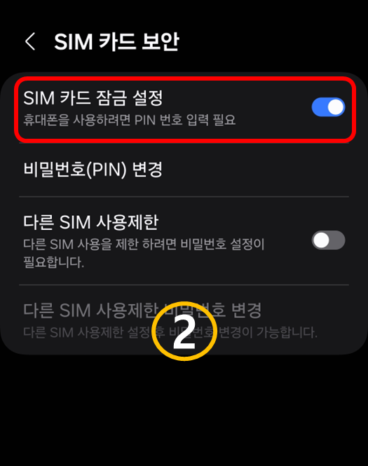 - ‘심 카드 잠금 설정’ 토글을 활성화