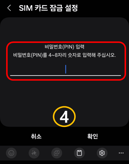 - 기본 PIN(통신사 제공, 보통 0000 또는 1234) 입력