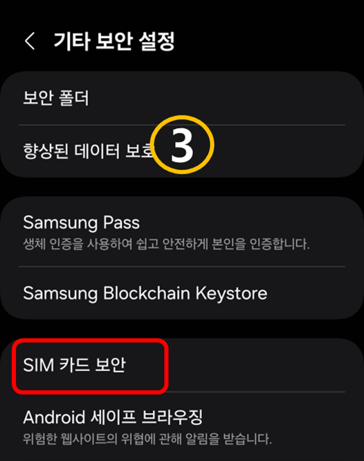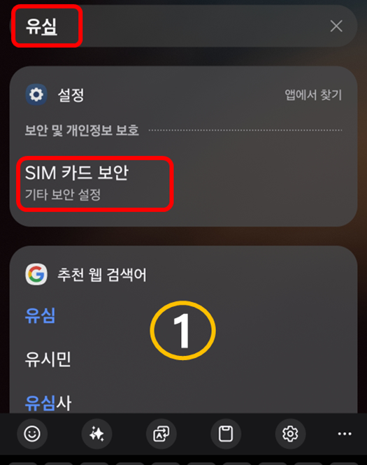 - 휴대폰 검색창에 "유심" 검색 > SIM 카드 보안 or 설정 > 보안 및 개인정보 보호 > SIM 카드 보안