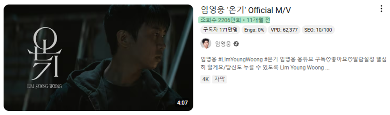 자작곡 '온기' 뮤직비디오의 인기